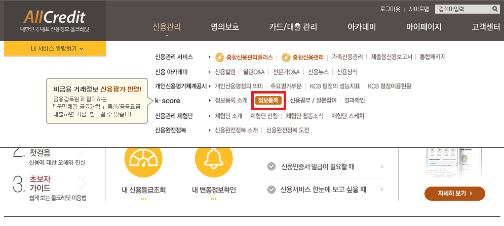 KCB 올크레딧 비금융정보 등록하기