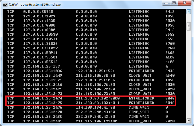 그럴때 사용할 수 있는 방법이 netstat와 작업관리자의 PID를 이용하는 방법이 있다.