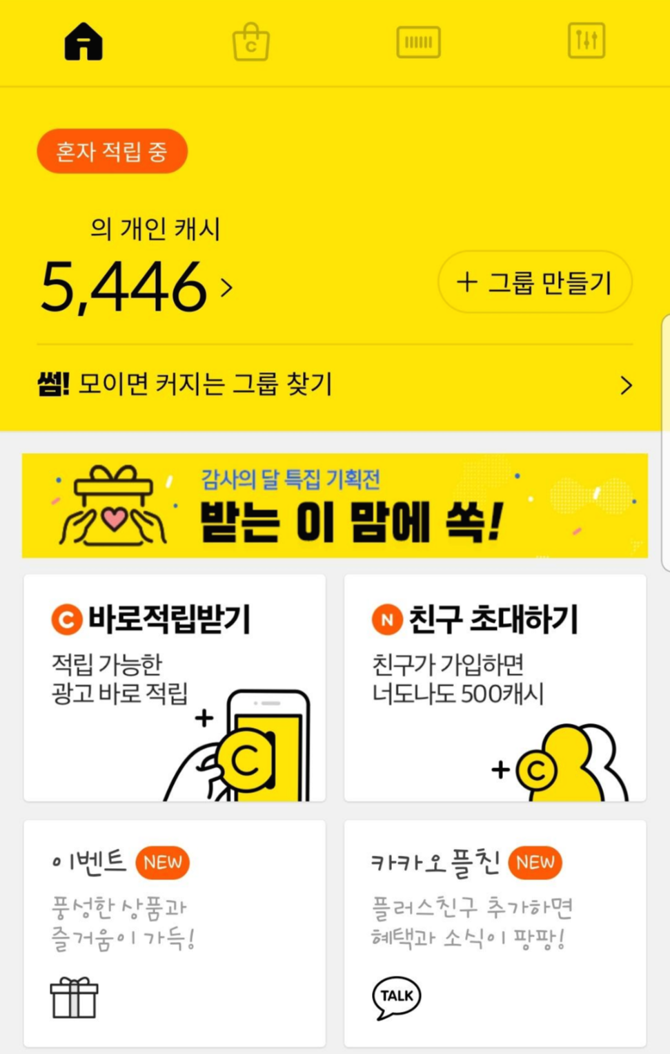 이 앱의 특이한점은 캐시슬라이드 앱의 기능에서