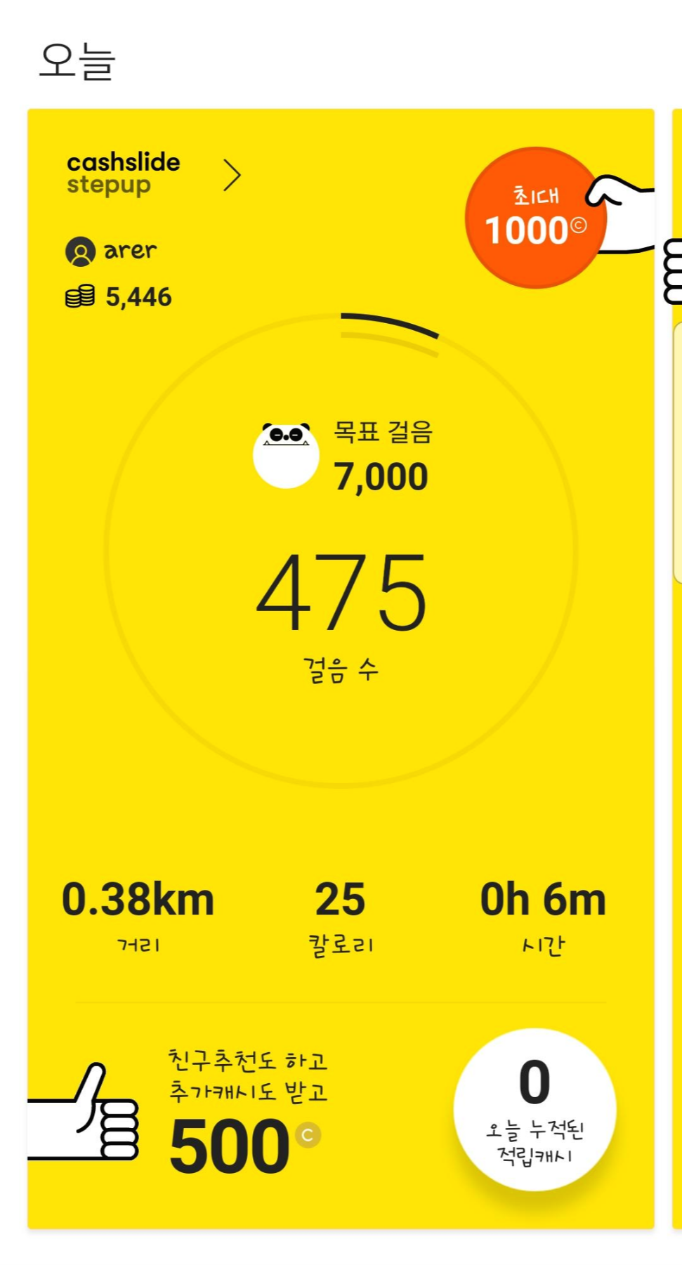 위 그림 처럼 캐시슬라이드 앱 위에 만보기 기능이 있고