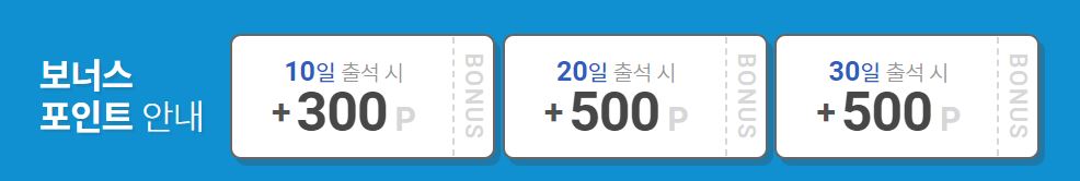 거기에 10일, 20일, 30일 출석시 마다 추가 포인트를 준다.