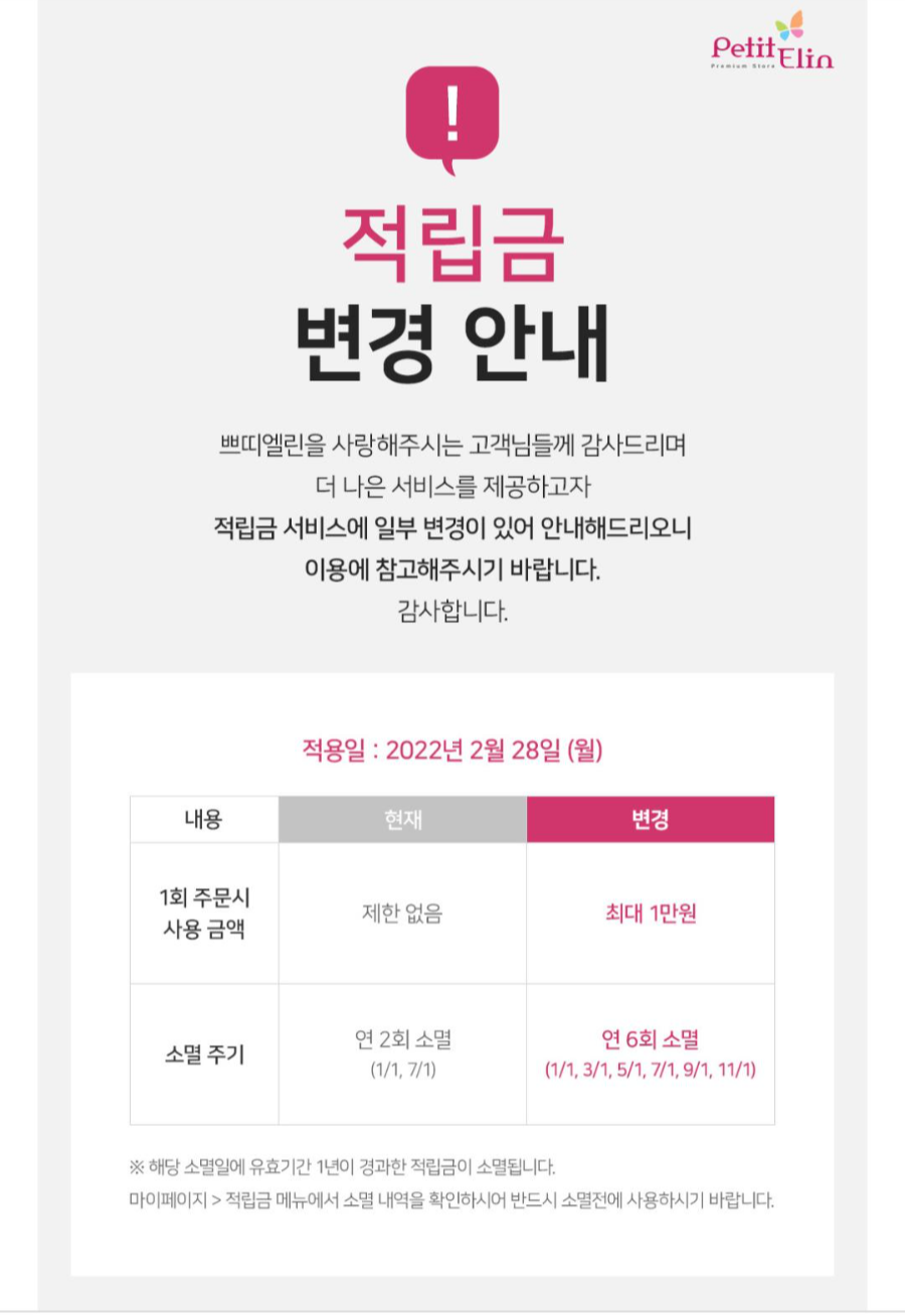 다만 아쉽게도 2022년 3월부터 1회 주문 시 포인트를 최대 만원까지만 사용할 수 있도록 포인트가 개편되었다.