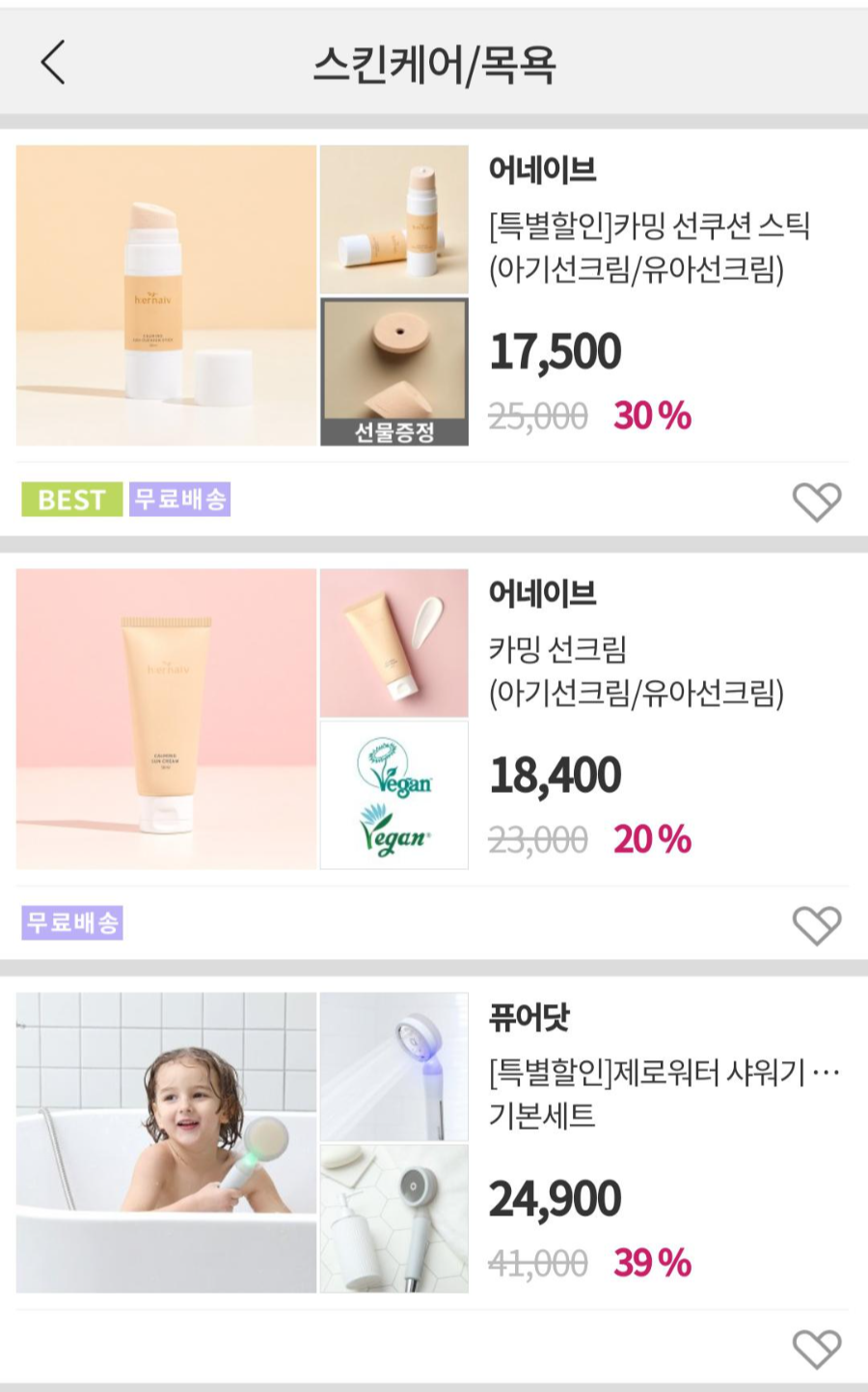 선크림, 선스탁 같은 화장품 류 샤워기 필터 등등 다양한 제품을 판매한다.
