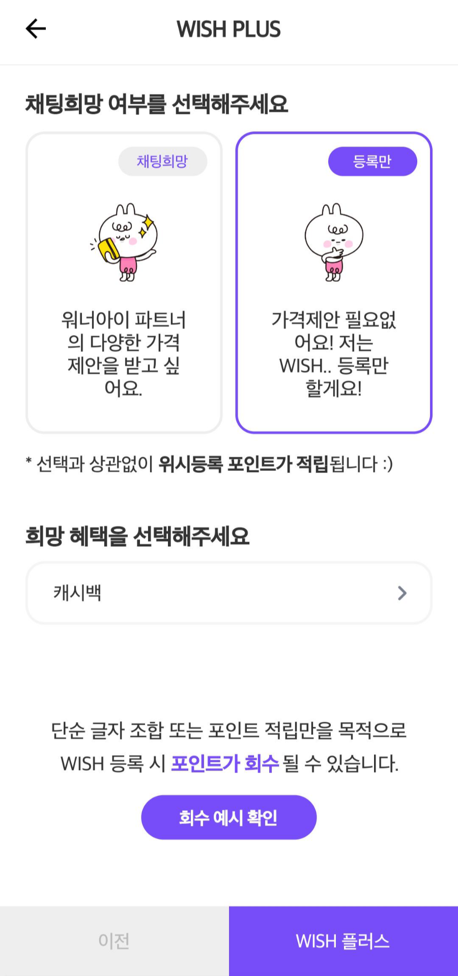 등록을 하게되면 위시포인트 100포인트를 준다.