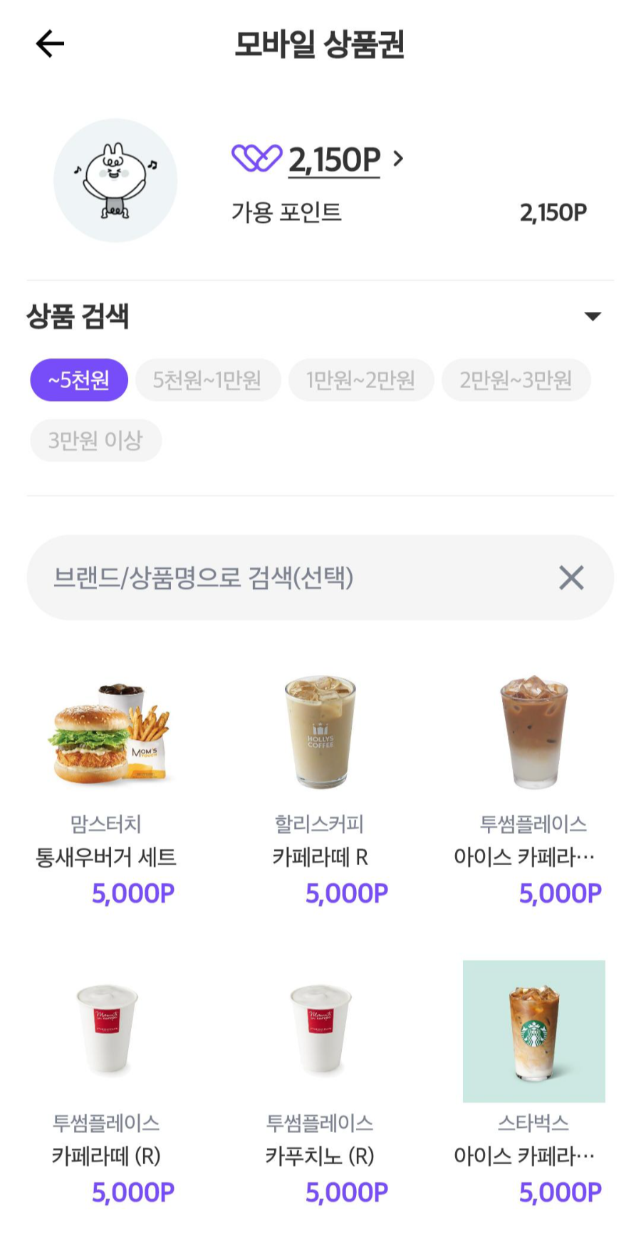 모바일 상품권은 5,000포인트 부터 구매 가능하고,