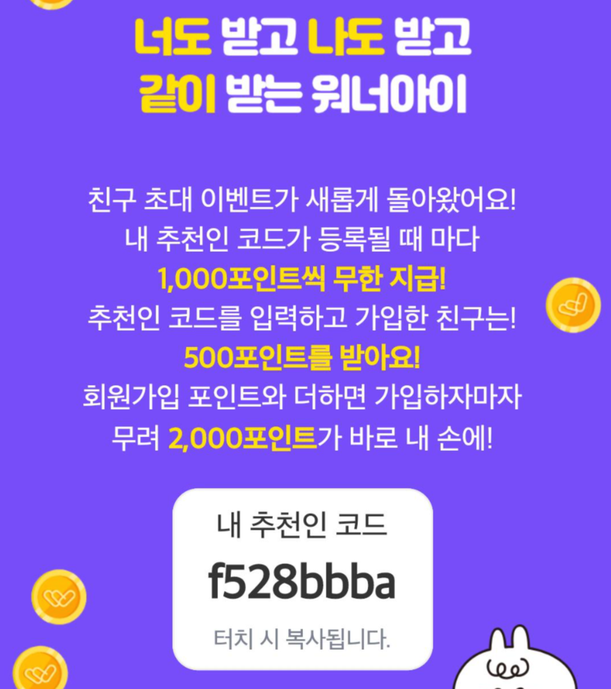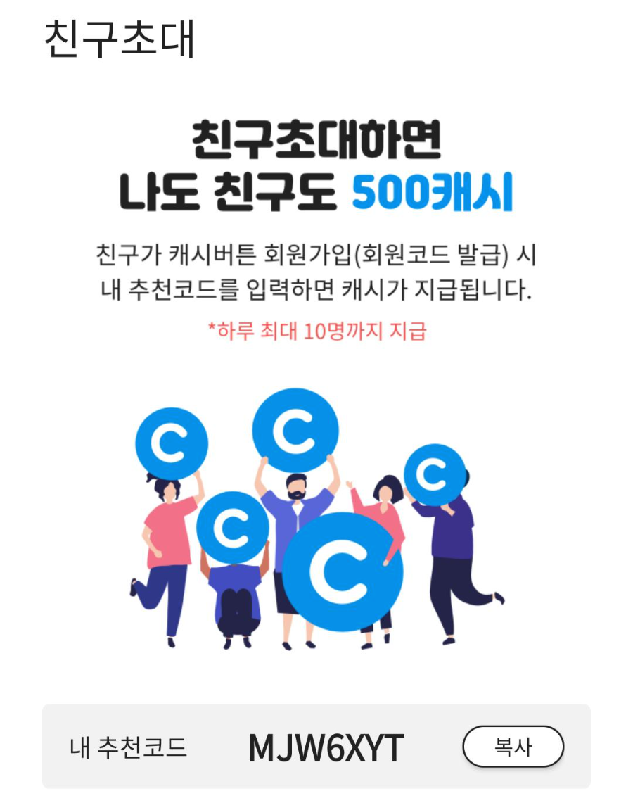 포인트가 2가지인 만큼 추천인코드도 2가지이다.