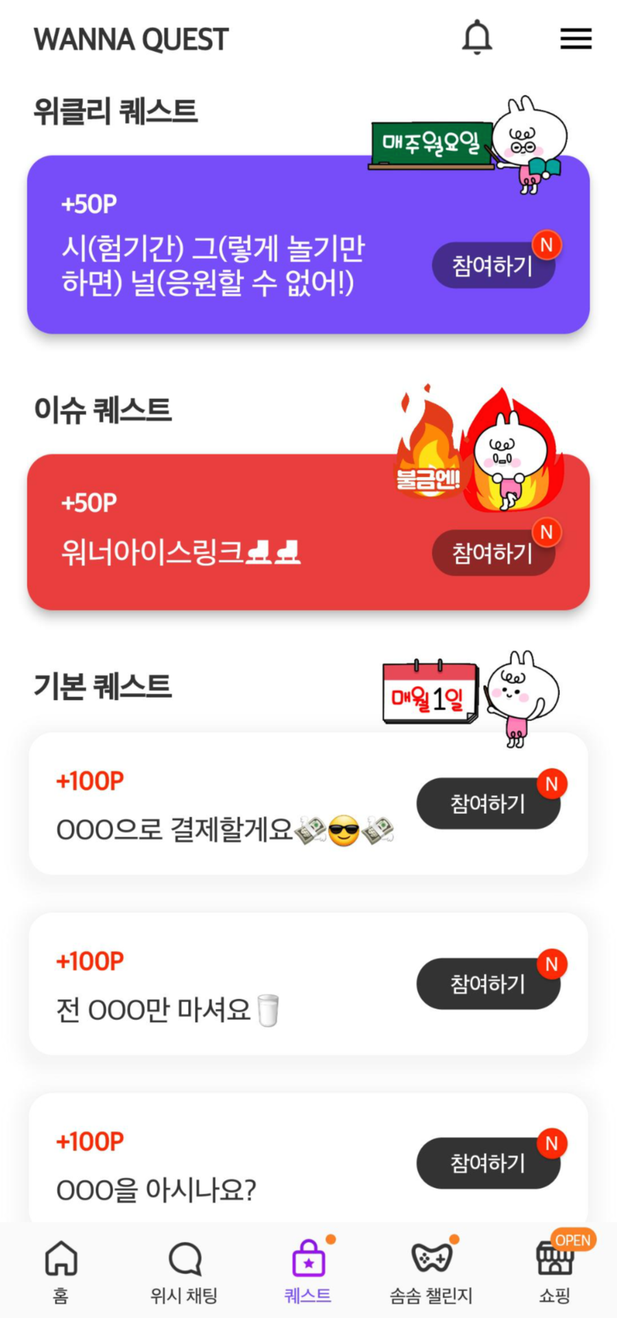 이외에도 퀘스트라는 메뉴(설문조사 방식)나 쇼핑적립을 통해서도 포인트를 얻을 수 있다.