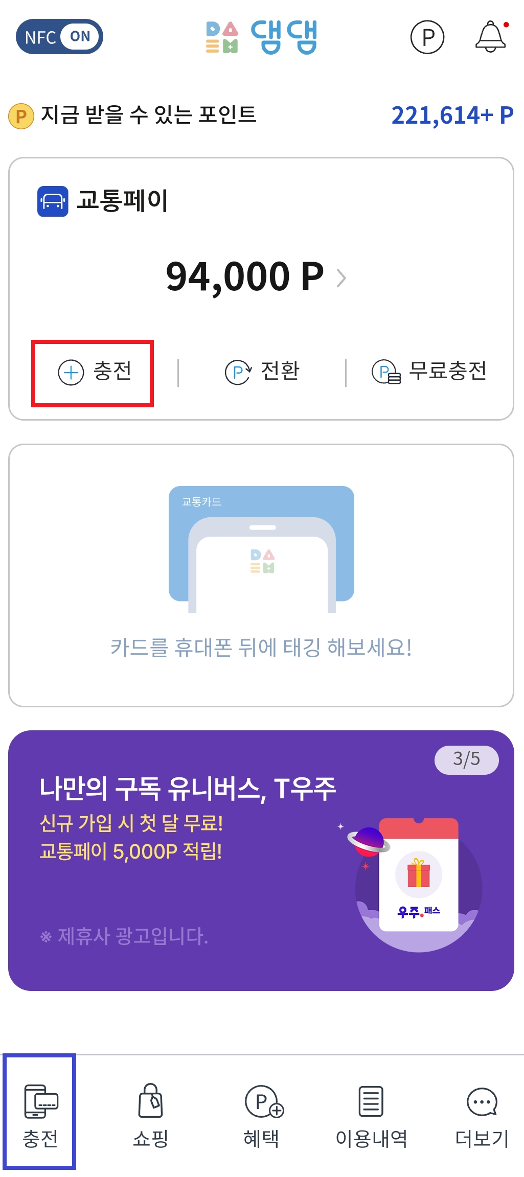 댐댐은 원래 교통페이, 교통카드 충전앱인데
