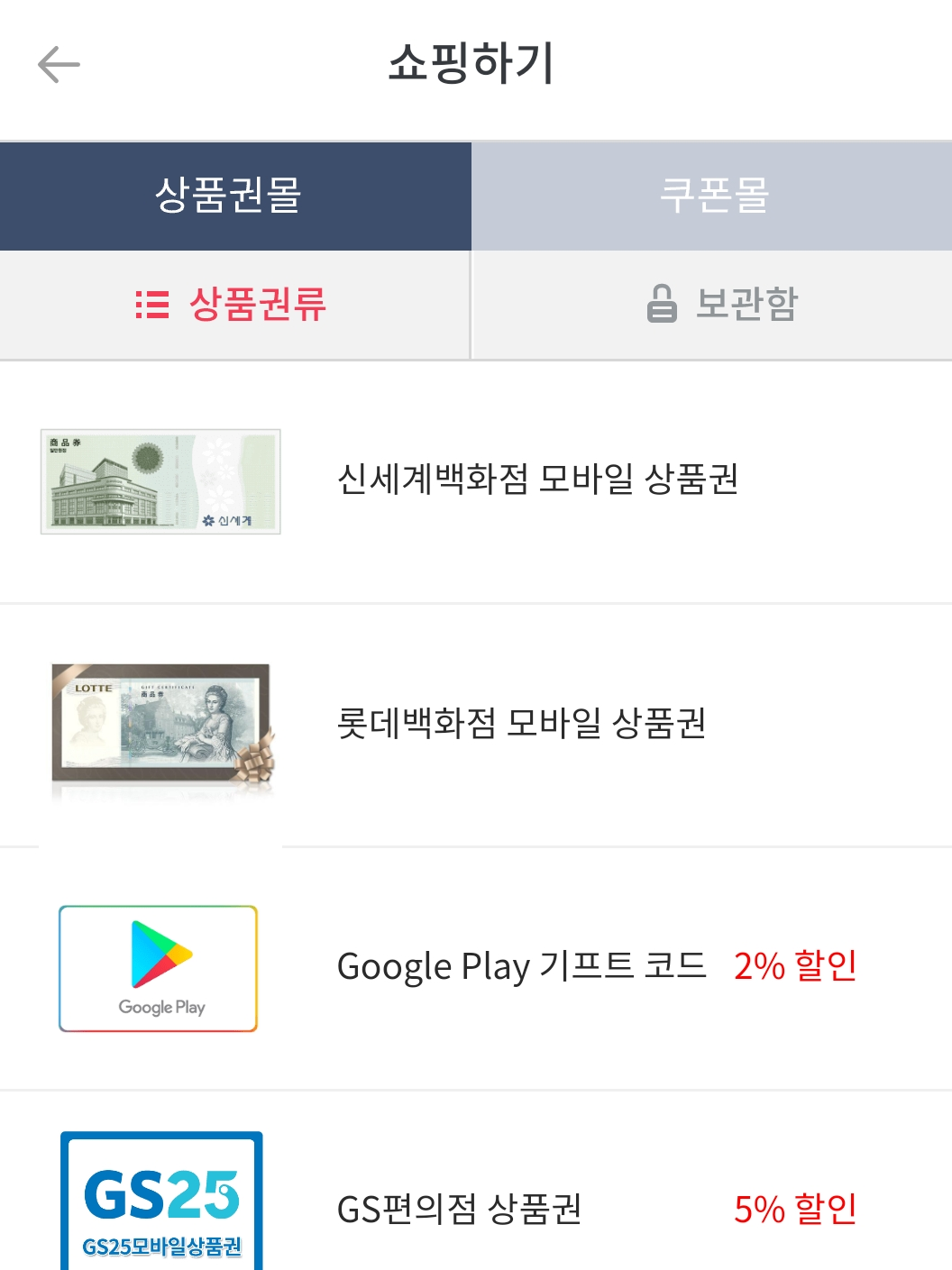 1. 앱 자체 쇼핑 메뉴에서 상품권 구매