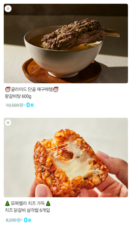 이번달 기준으로는 갈비탕, 삼각김밥6개 중 1개를 고를 수 있다.
