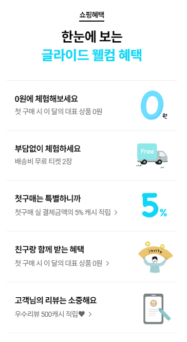 글라이드는 환급형 앱테크는 아니고 출석체크 포인트(캐시)를 모아 싸게 쇼핑할 수 있는 앱테크이다.