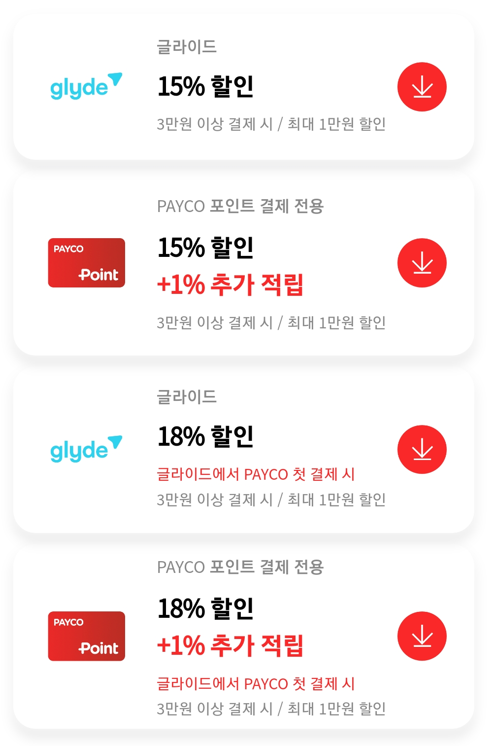 또 페이코에서 글라이드 결제 시 15%(글라이드 첫 결제 시 18%) 쿠폰을 제공해 준다.
