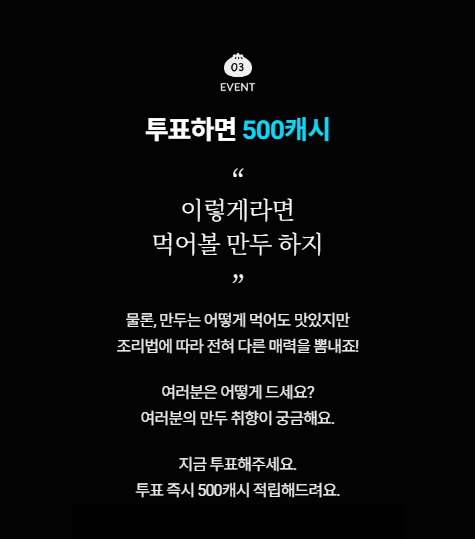 만두 조리법 취향 투표를 하면 500캐시를 제공한다.
