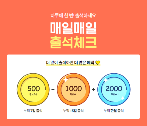 한달 모두 출석하면 3500캐시를 받을 수 있다.