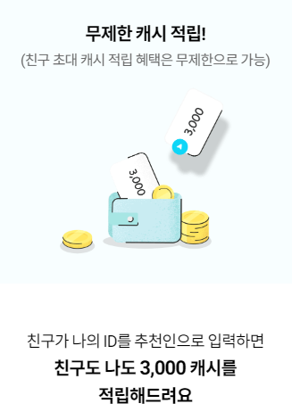 우선 가입 시 추천인 ID를 입력하면 3천 캐시를 준다.