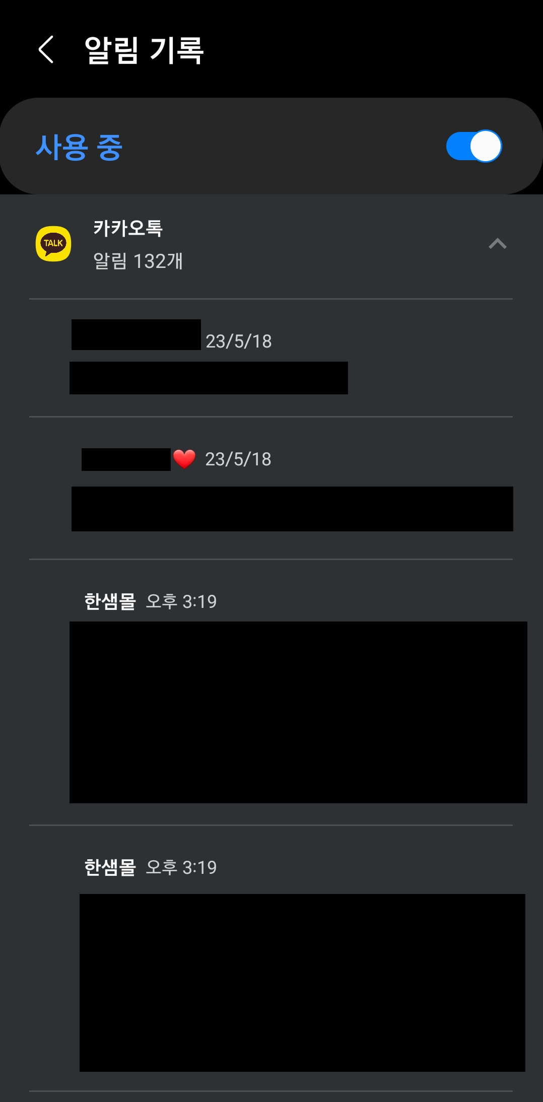 (원리는 카톡 푸시알림이 켜져있다면 카톡이 올때마다 푸시알림이 오므로 푸시알림 기록을 보면서 카톡 확인이 가능하다.)