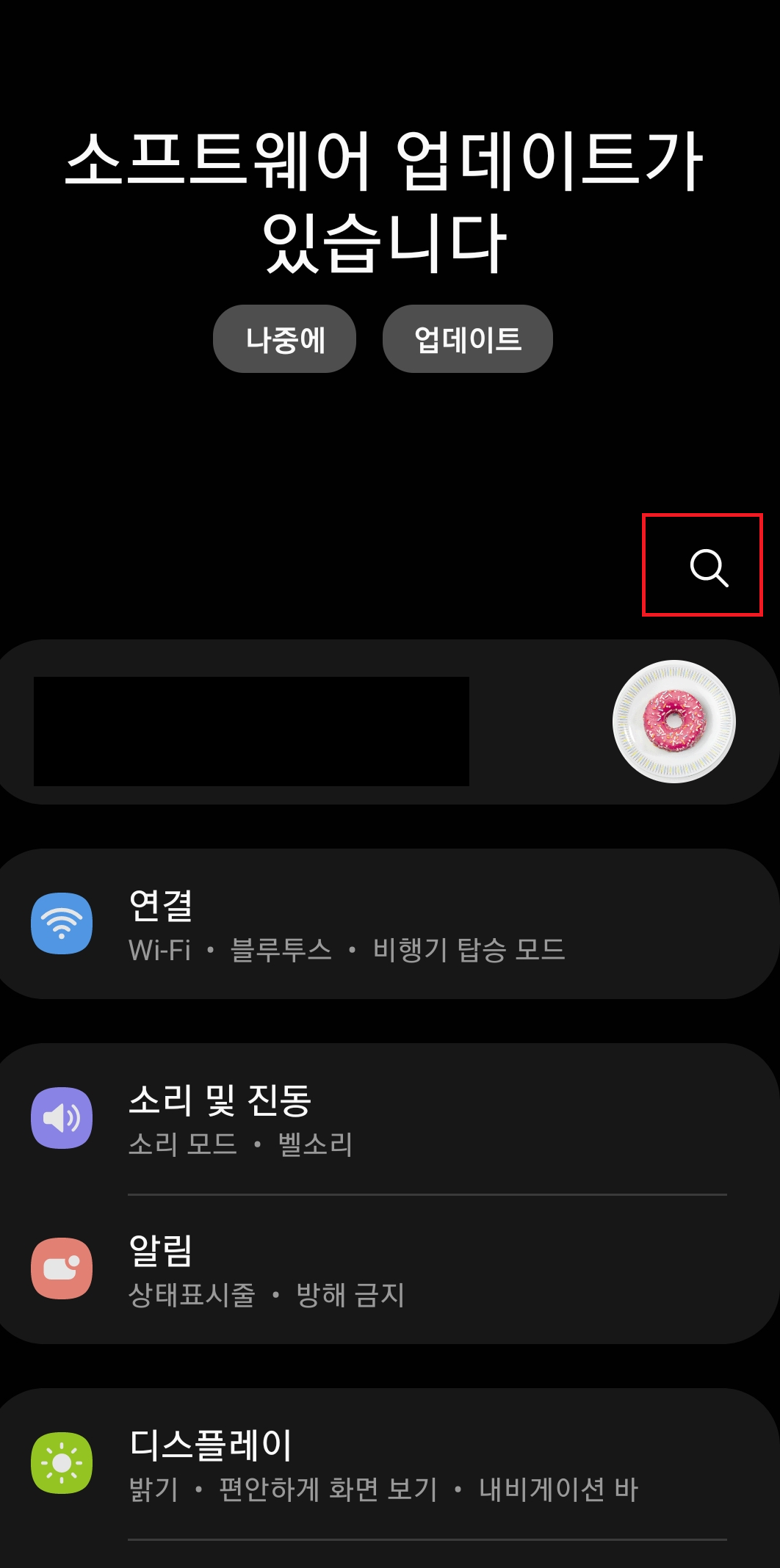 2. 돋보기 버튼을 눌러 "알림 기록"을 검색한다
