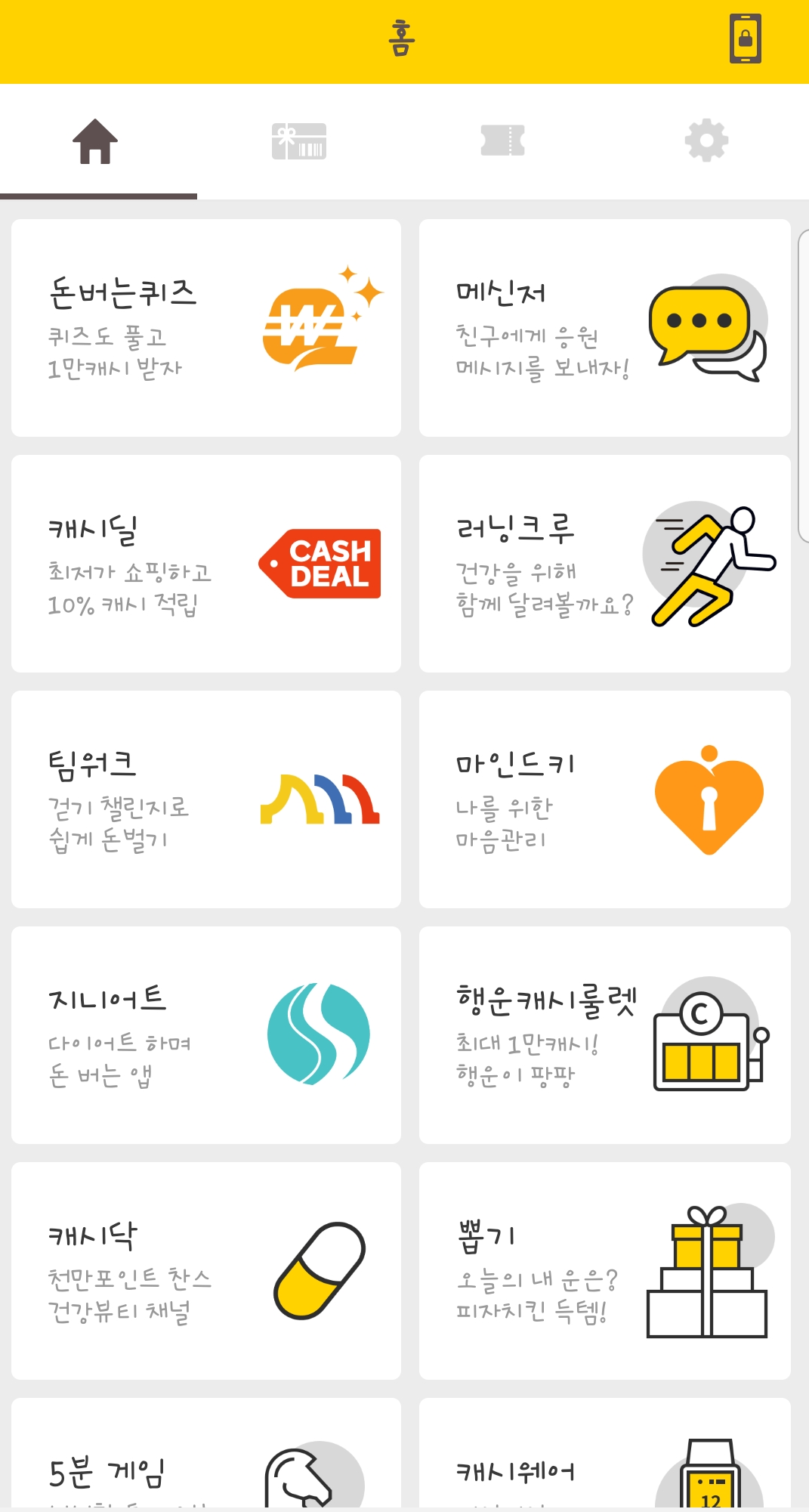 만보기 이외에도 돈버는 퀴즈, 러닝크루 등 여러가지 부가 기능이 있다.