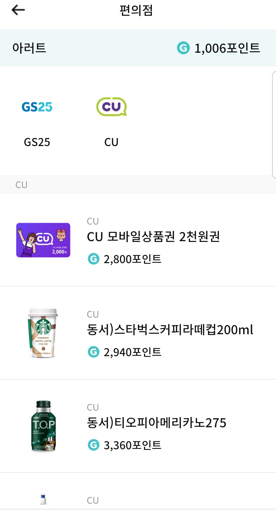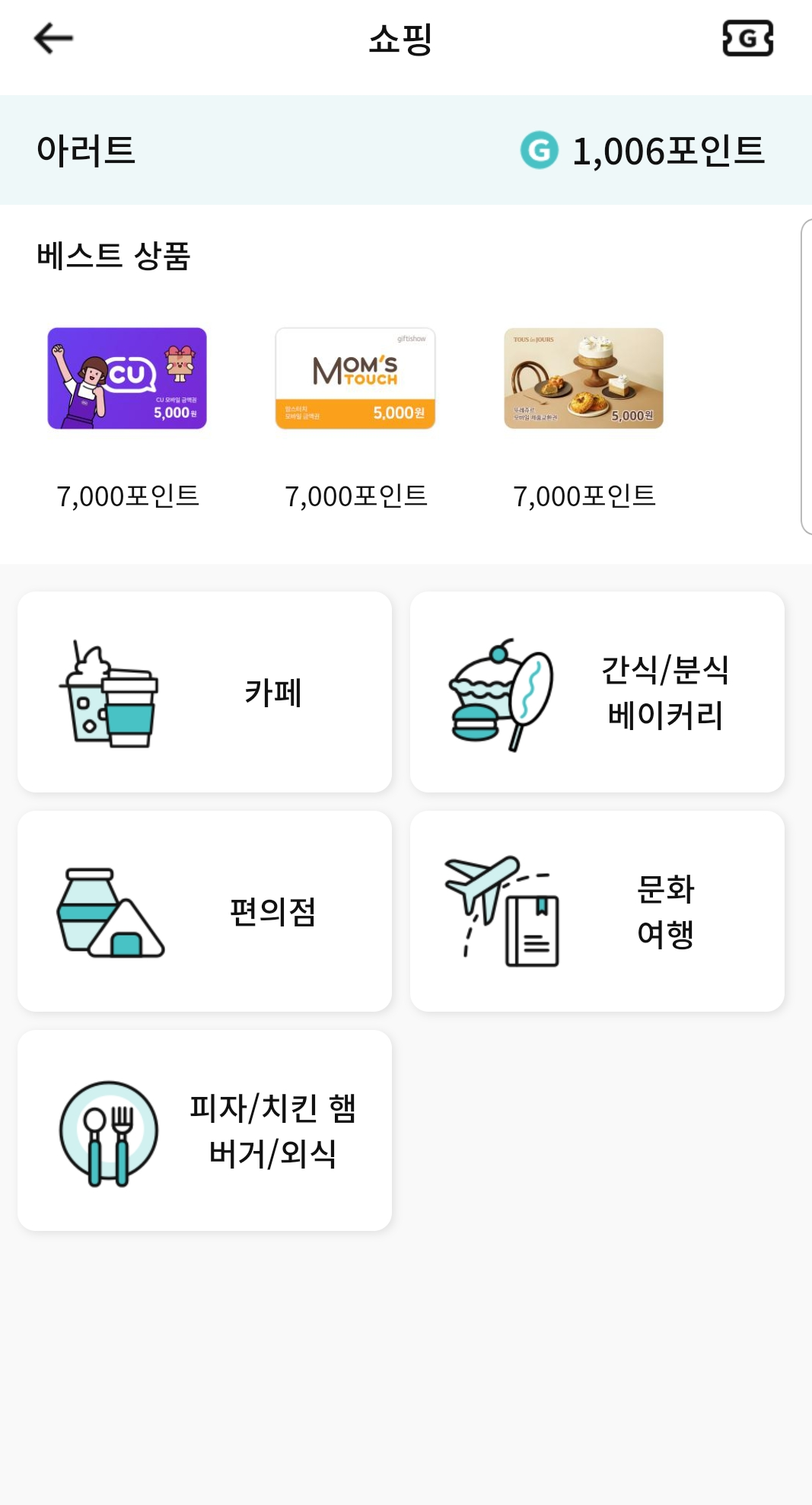 가장 핵심인 편의점 기프티콘을 구매할 수 있다.