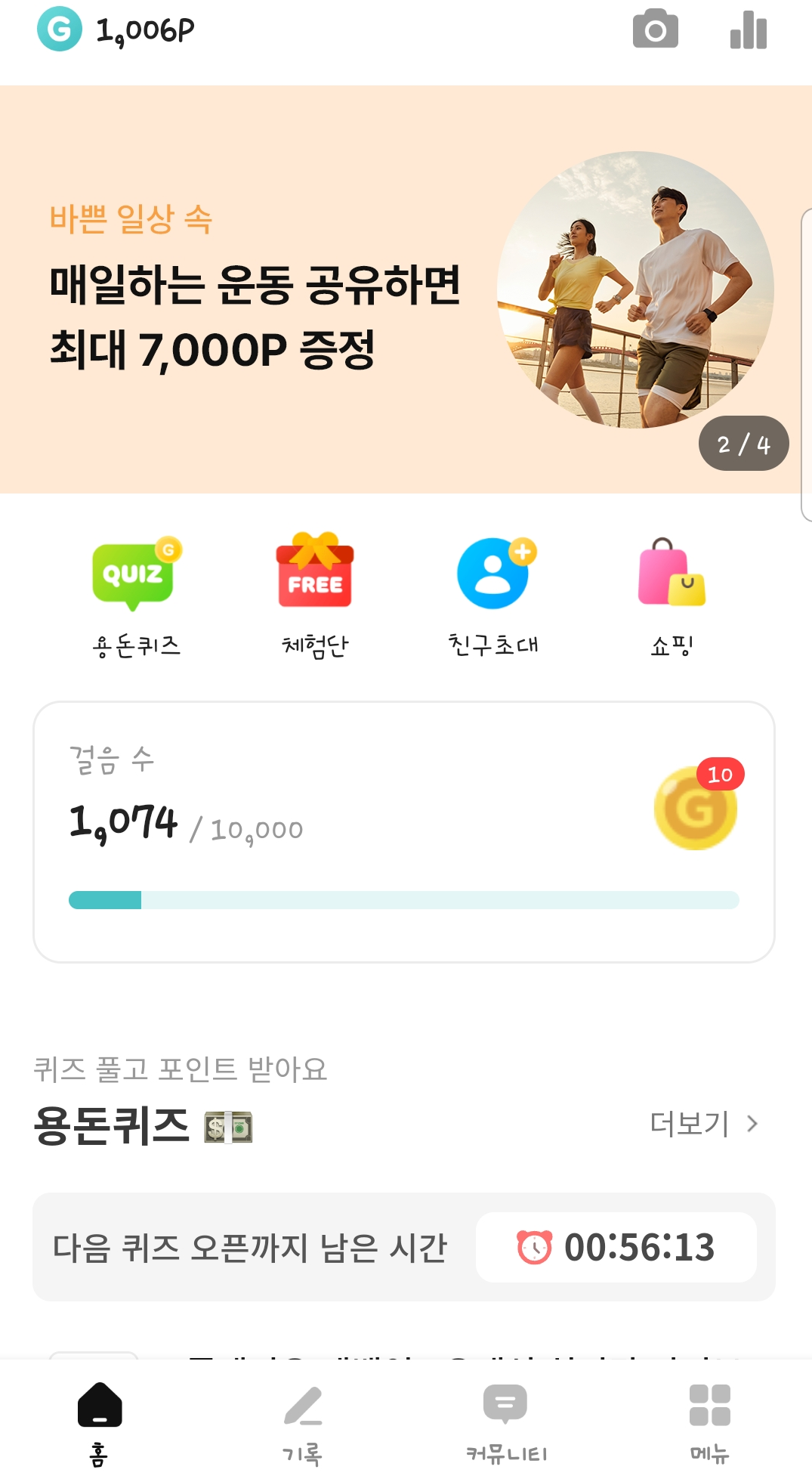 개인적으로 캐시워크보다는 훨씬 만보기로 활용이 좋은 앱이다.