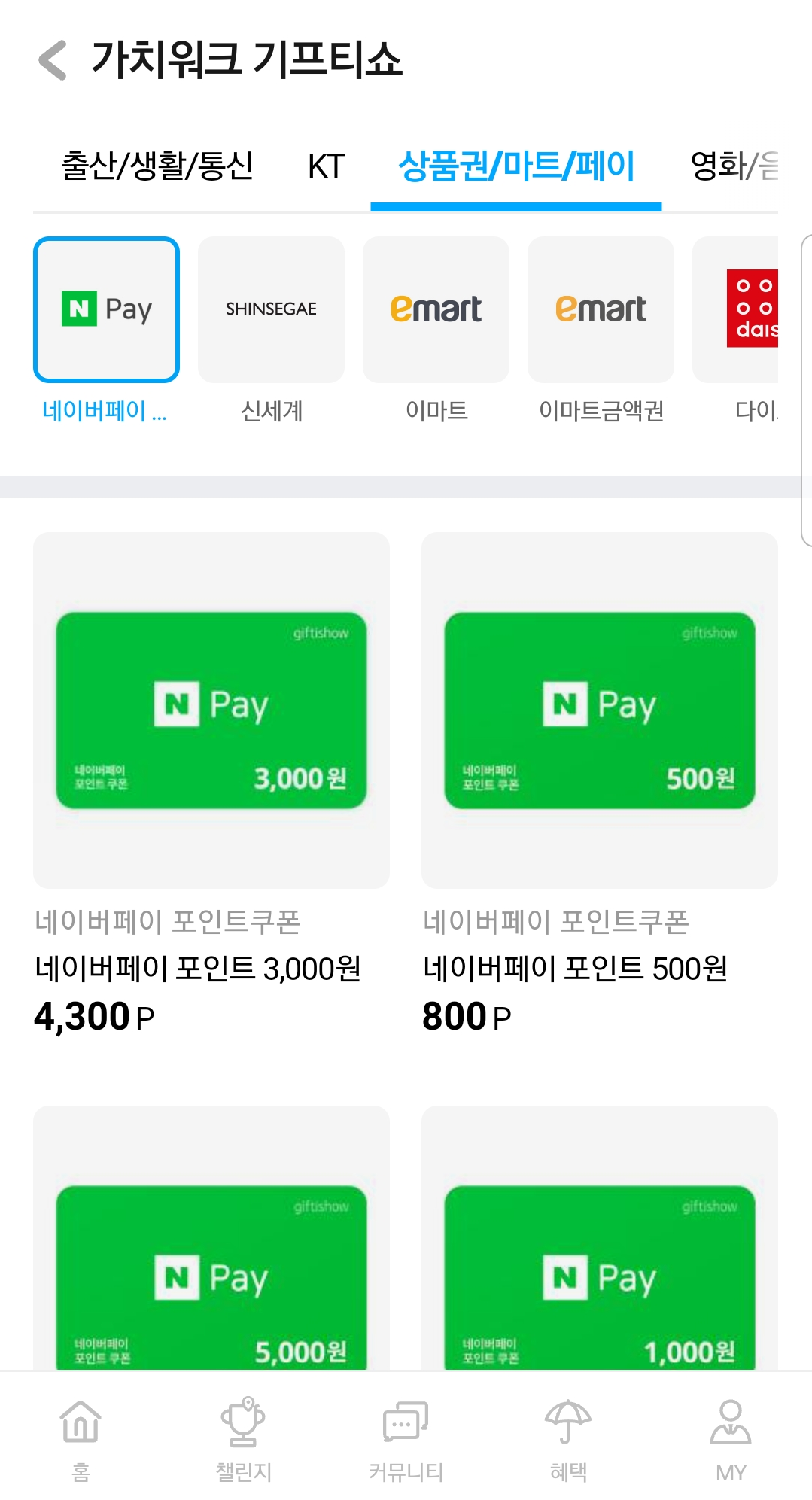 네이버 페이 포인트 상품권도 있고 아주 소액 상품권들도 있어서