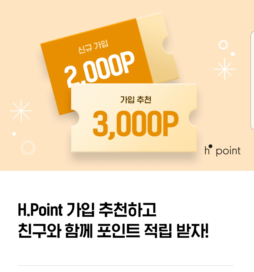 아직 가입안하신 분들은 h포인트 초대코드(추천코드)를 입력하면 2000포인트를 받을 수 있다.
