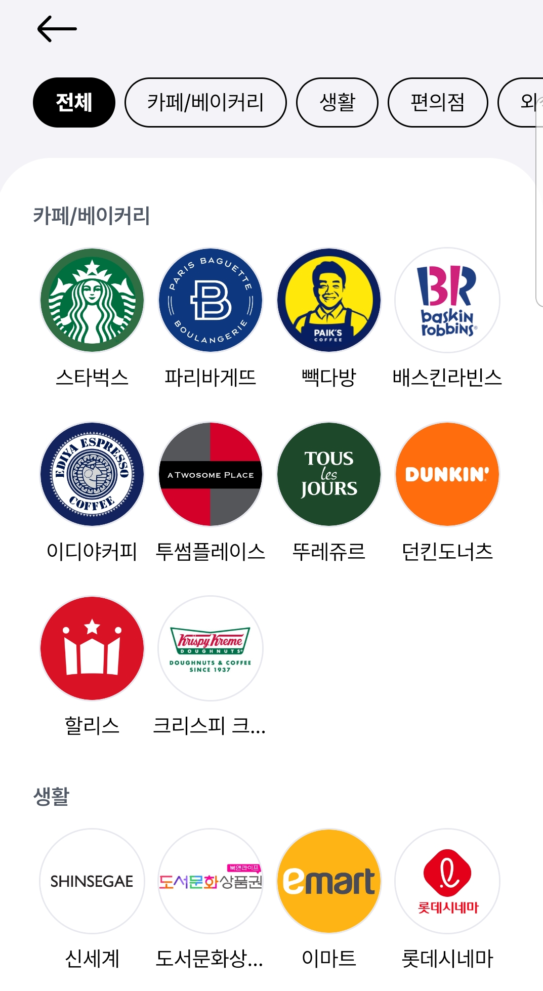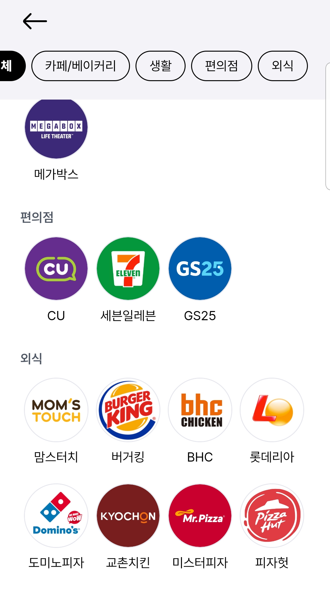 포인트는 현금 캐시백은 없고 카페, 편의점 등의 기프티콘이나 상품권을 구매할 수 있다.