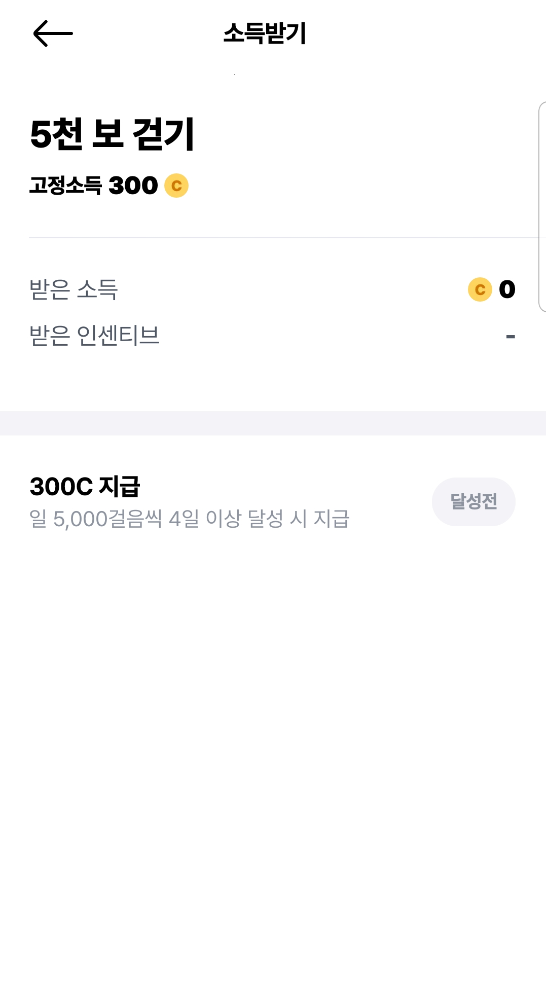 5천보 챌린지 성공 시 300코인(최소 4일 소요)